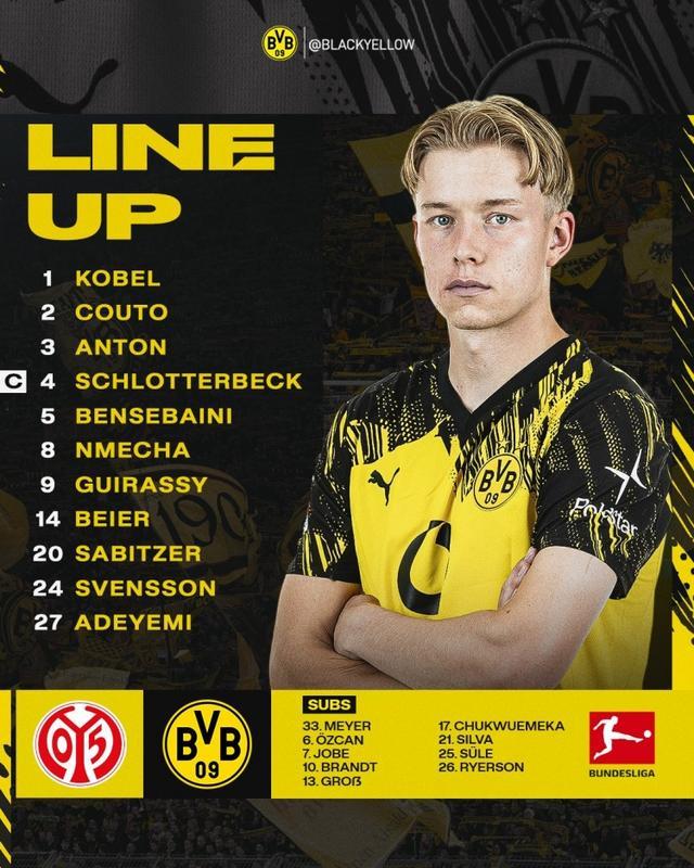 直播吧9月27日讯 北京时间今天晚上21点30分,多特将在德甲第5轮比赛中客场对阵美因茨,两队公布了此役的首发阵容。